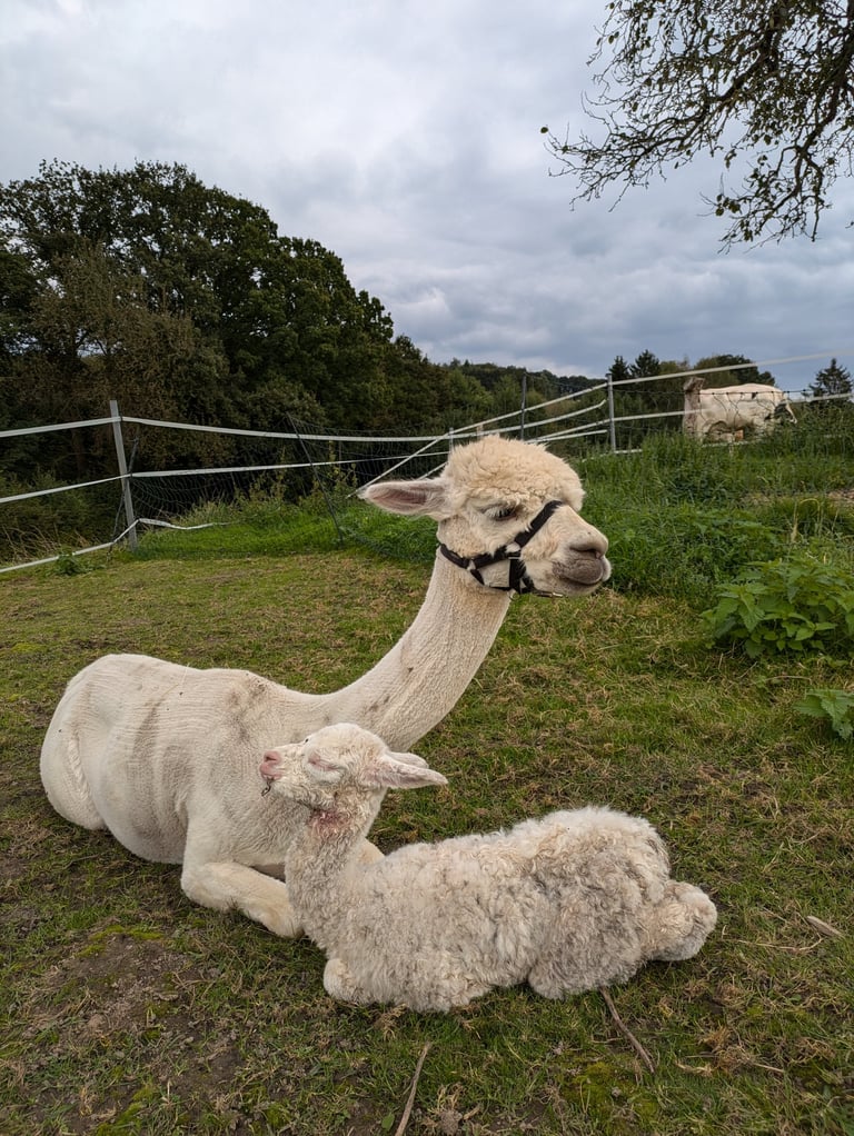 Ein kurzes Vorwort: Bitte beachtet, dass Alpakas trotz aller Niedlichkeit keine Kuscheltiere sind. Wenn sie nicht angefasst werden wollen, bitten wir, das zu respektieren. Dennoch sind Alpakas keine Wildtiere - sie wurden bereits vor über 5000 Jahren domestiziert. Ihre wilden Vorfahren, die Vicunyas, leben auch heute noch in den Anden. Alpakas wurden für die Fellproduktion gezüchtet, den Kontakt mit Menschen und auch am Strick geführt zu werden sind sie also gewohnt.